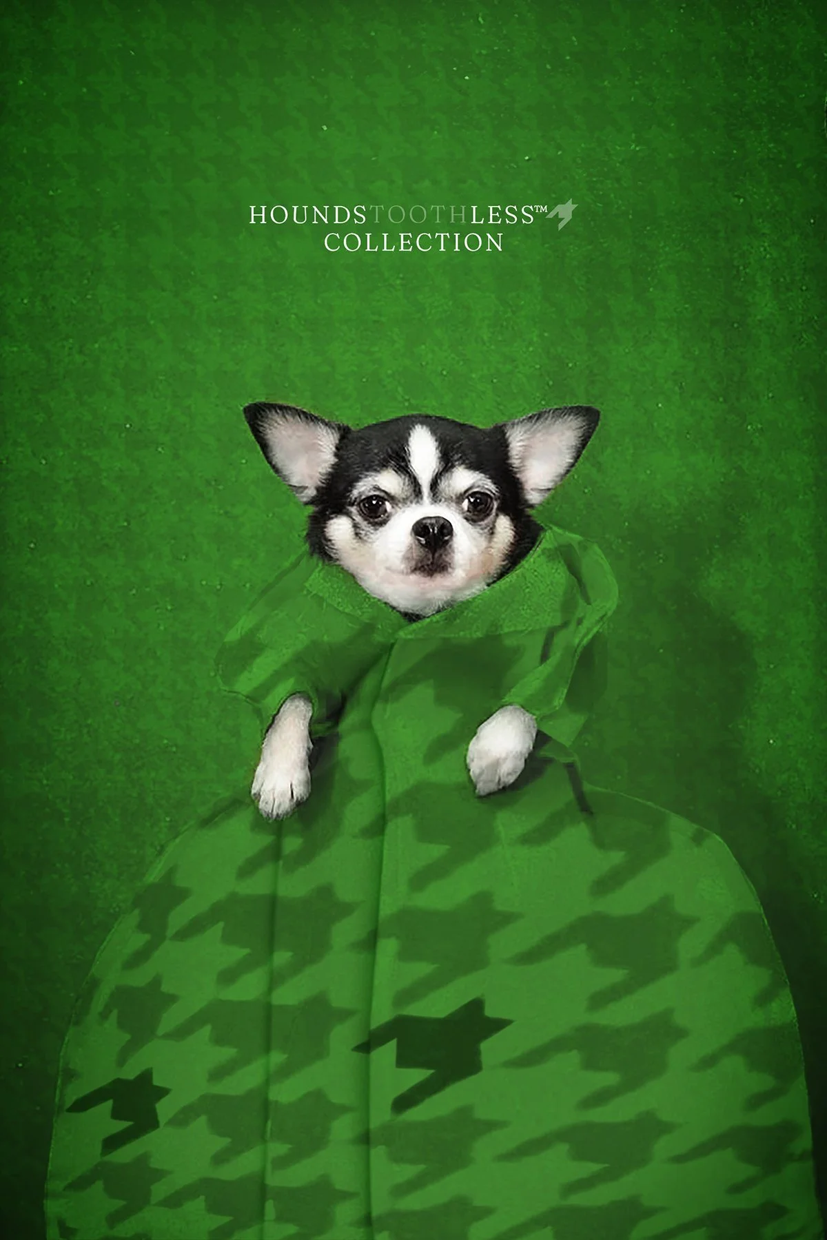 we partnered with christian siriano to create matching trench coats for pet parents and pups. inspired by this year’s houndstooth trend, we made houndstoothless™ missing 'teeth' to spotlight the canine dental crisis.