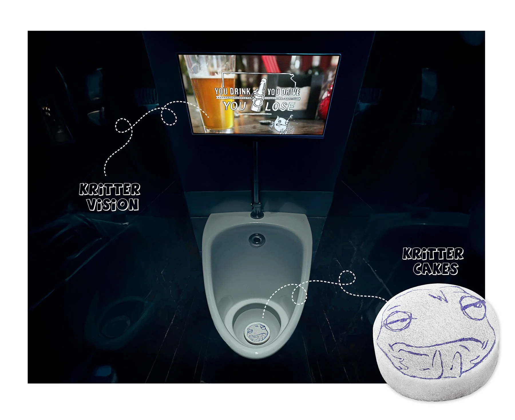 we rewrote the brief. instead of “everyone over 21,” we went with “jesse pinkman.” from there, we made a foolish kritter who loves to drink and drive, only to pay the ultimate price and become a huge loser. from video game media buys to adult swim-style humor to kritter-branded urinal cakes, this campaign hit them where it hurt: their pride.