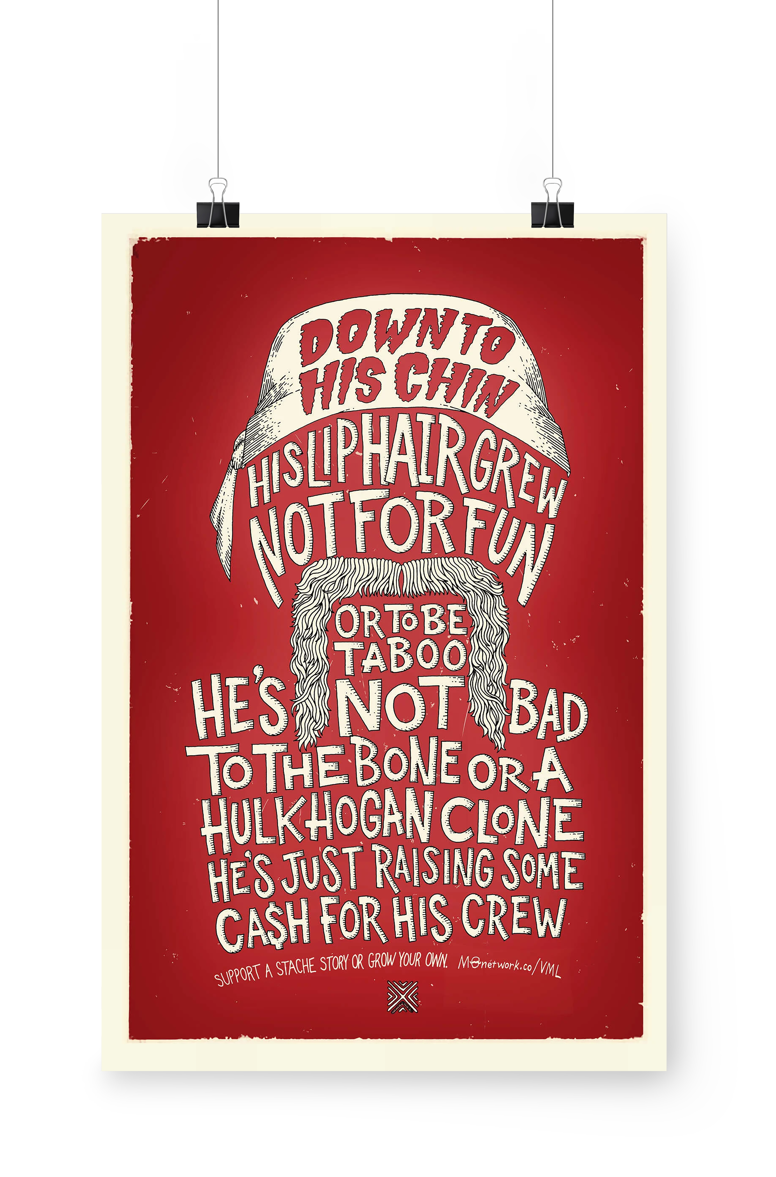 for movember, & what better way to tell a mustache story than with a good ol’ fashioned limerick? the results were three simple & hand drawn posters that gave each mustache its own distinct story & style.